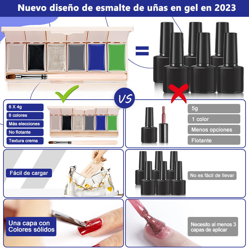 2.Solid Gel Polish Palette 6 in 1 Cream Soak Off Semi Permanent UV LED Lamp Paint Nail Gel Palette Of Hybrid Varnishes