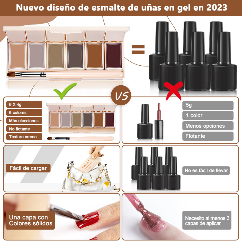 2.Solid Gel Polish Palette 6 in 1 Cream Soak Off Semi Permanent UV LED Lamp Paint Nail Gel Palette Of Hybrid Varnishes